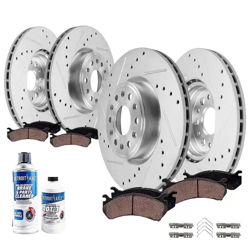 10pc Front & Rear Drilled Slotted Rotors and Ceramic Brake Pads Kit Professional Grade