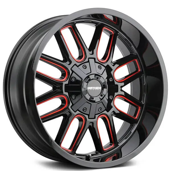 17″ Mayhem Wheels 8107 Cogent Gloss Black with Prime Red Off-Road Rims Latest