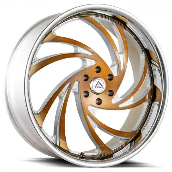 26″ Azad Wheels AZ Drip Brushed Gold with SS Lip Rims
