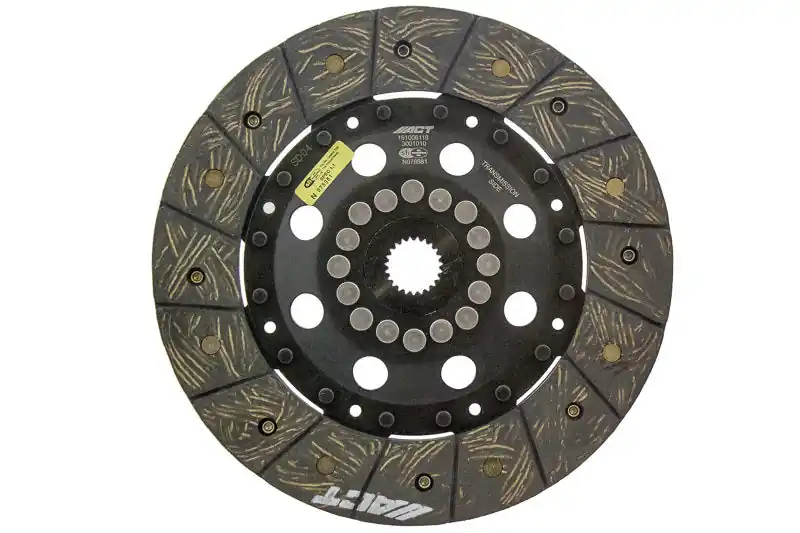 3001010 is a street rigid disc featuring premium organic materials with high copper content for better heat transfer and steel-backed lining for greater burst strength and durability. These discs are modified with reduced marcel for faster shift action to complement ACT pressure plates. The chrome-moly hub is heat-trea