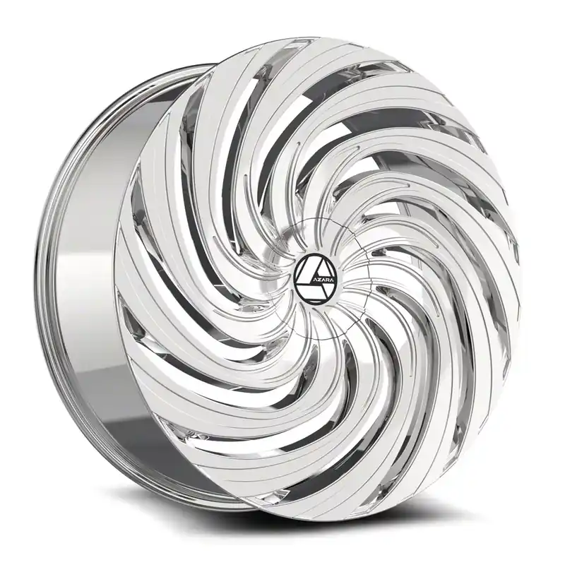 This 24×9 Azara AZA-535 Nano Chrome Wheel; Rear Only; 24×9; 32mm Offset is completed in a high-quality chrome finish that will make everyone take notice. Using a 3-stage process involving copper, nickel and chrome, you get a sensational bright wheel that can withstand the rigors of daily driving.